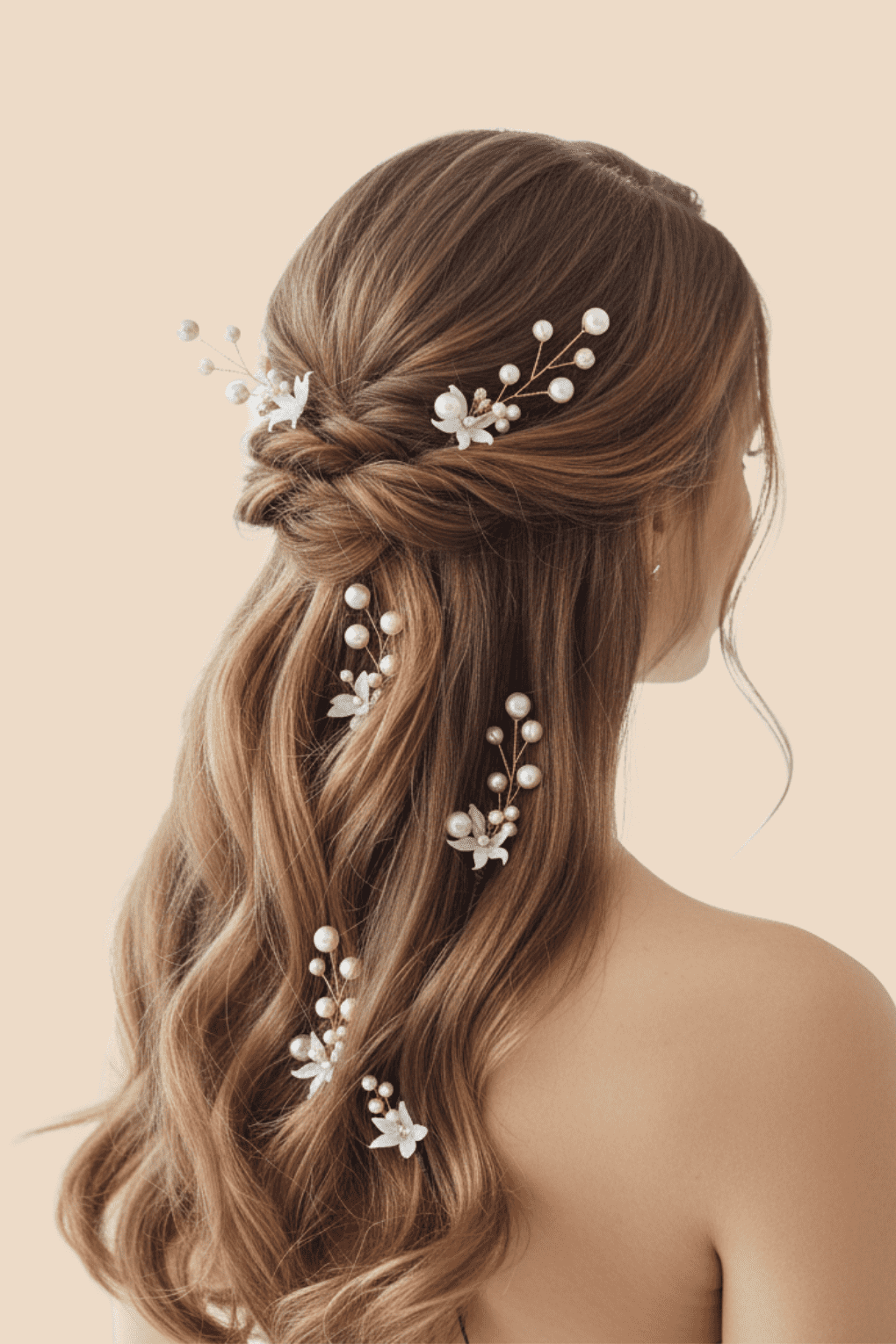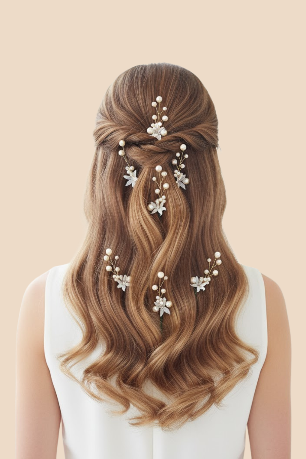 Elegant golden floral & pearl designer hair pins perfect for bridal, festive, and party hairstyles. Pack of 8.